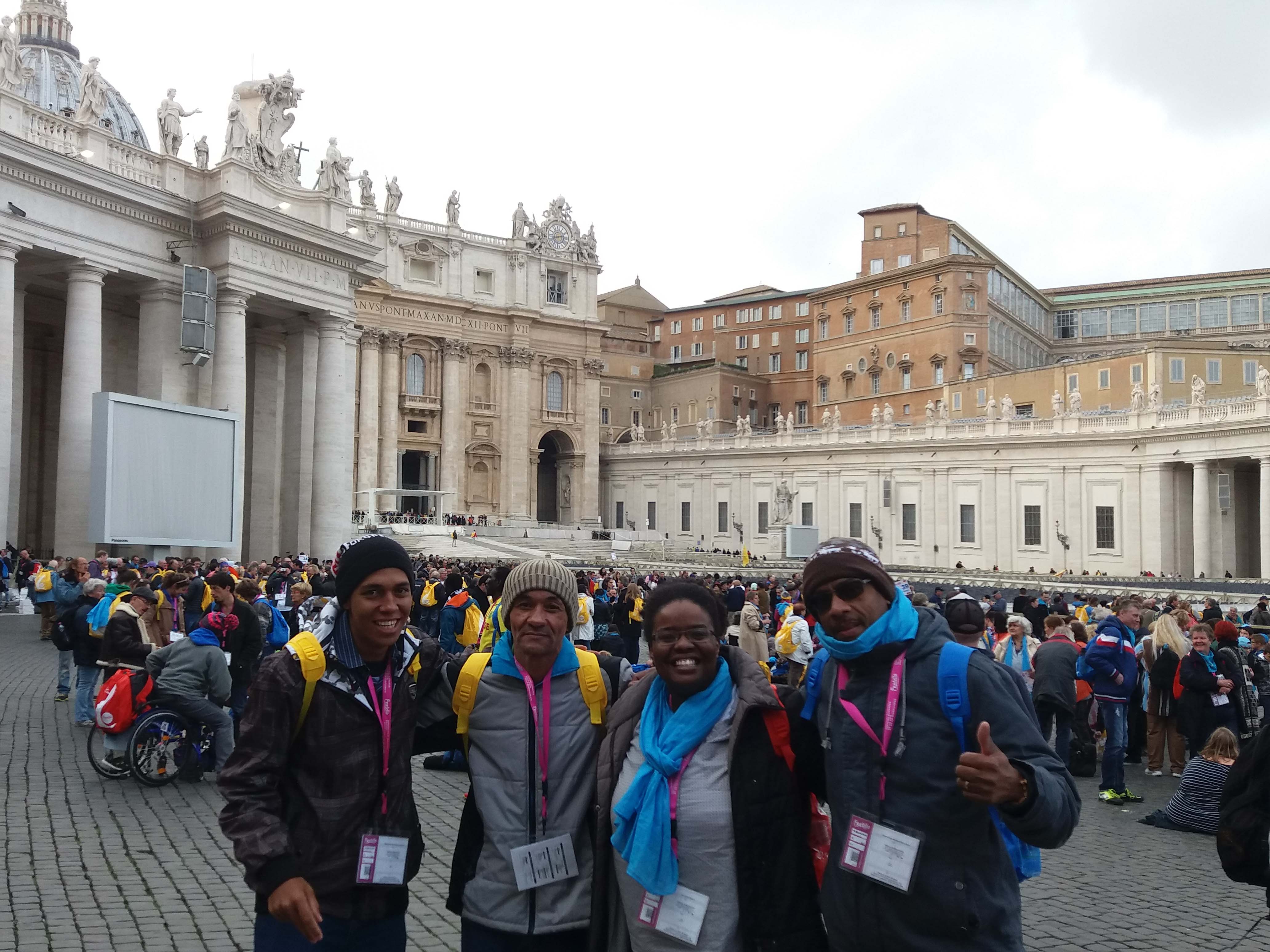 A Aliança de Misericórdia enviou três filhos para o retiro espiritual com o Santo Padre. Um dos enviados foi Gumercindo – orientador da casa Restaura-me, Cícero – cozinheiro da casa Restaura-me e Mallone que está na escola de evangelização do Rio de Janeiro