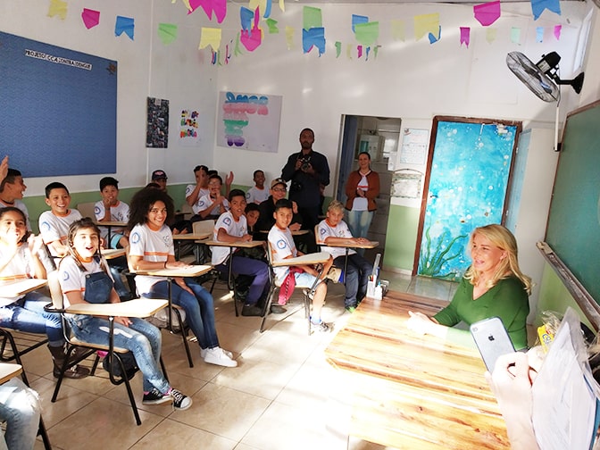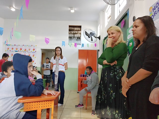 Terminado este momento, juntamente com Pe. Custódio, Bia Hauptmann, gerente de projetos da Associação, Renato Limongi, administrador e Joelma diretora do CCA Pe. Pio, Bia Doria dirigiu-se às salas de aula e conversou alguns minutos com as crianças.