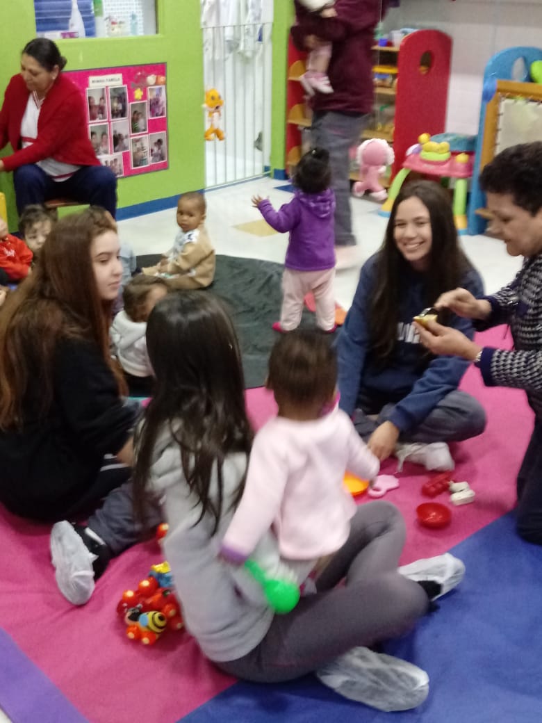 Os jovens ficaram encantados com todo o trabalho e muito à vontade quando tiveram contato com as crianças da Creche Misericórdia I.